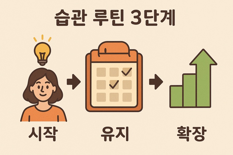 이번 글에서는 이 3단계 습관 루틴의 흐름을 구체적으로 설명하고,